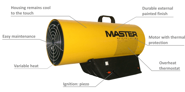 Přenosné plynové topidlo Desa Master BLP 73 M slouží k vytápění staveb a průmyslových prostor.
