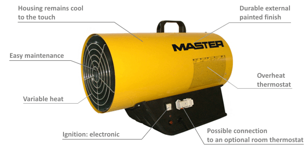 Přenosné plynové topidlo Desa Master BLP 73 ET slouží k vytápění staveb a průmyslových prostor.