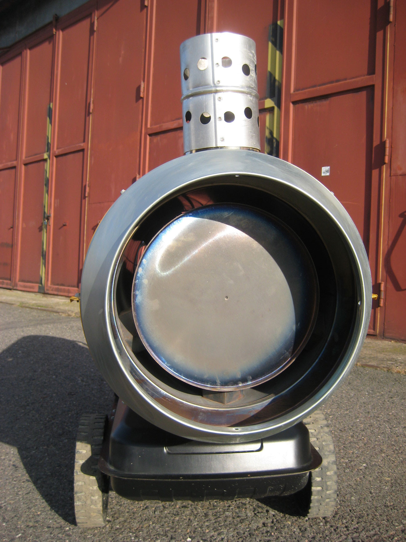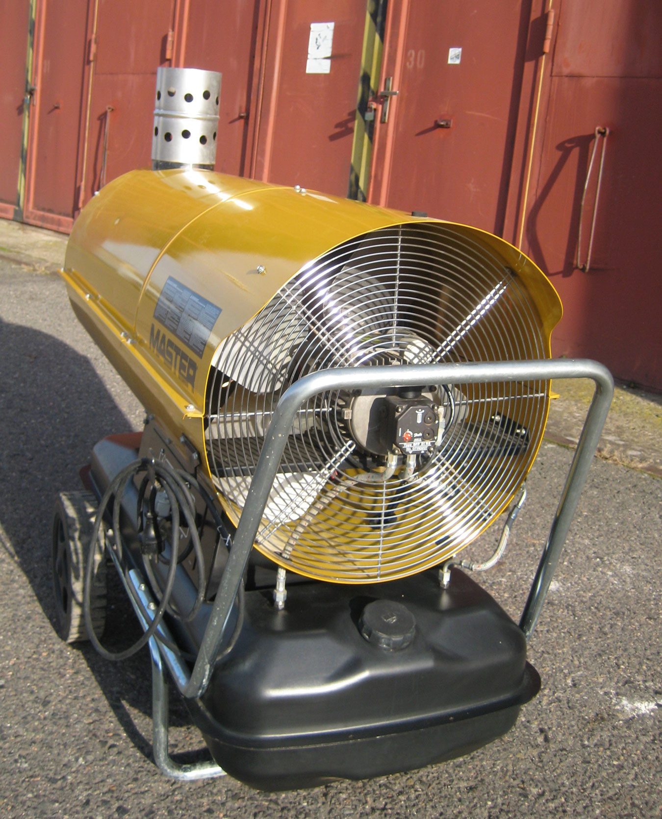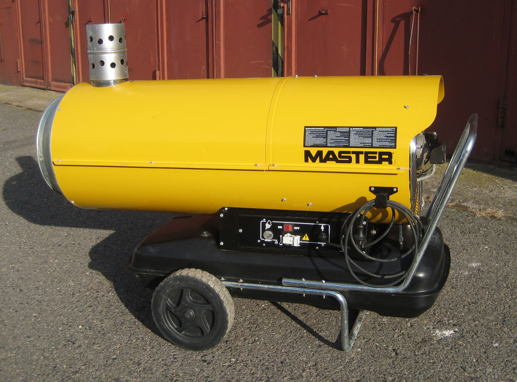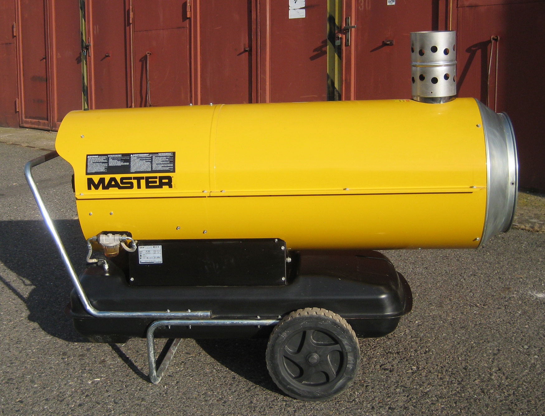 Přenosné topidlo Master BV 290 na naftu, nebo lehký topný olej.Topidlo je vybaveno tepelným výměníkem, spaliny se odvádějí ven kovovou hadicí nasunutou na komínek,