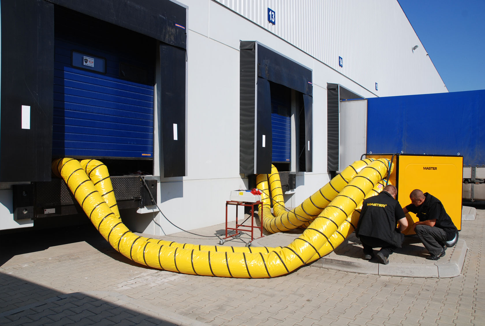 Topidlo Master je vybaveno 4 výfukovými otvory o průměru 300 mm, na které je možné nasadit průžné hadice k rozvodu teplého vzduchu.