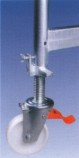 Kolečka jsou z nylonu o průměru 150 mm, jsou opatřena brzdou a šroubovou stojkou.