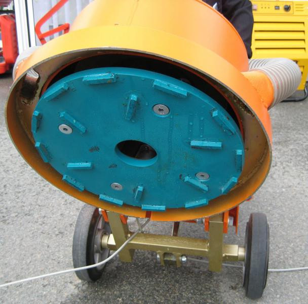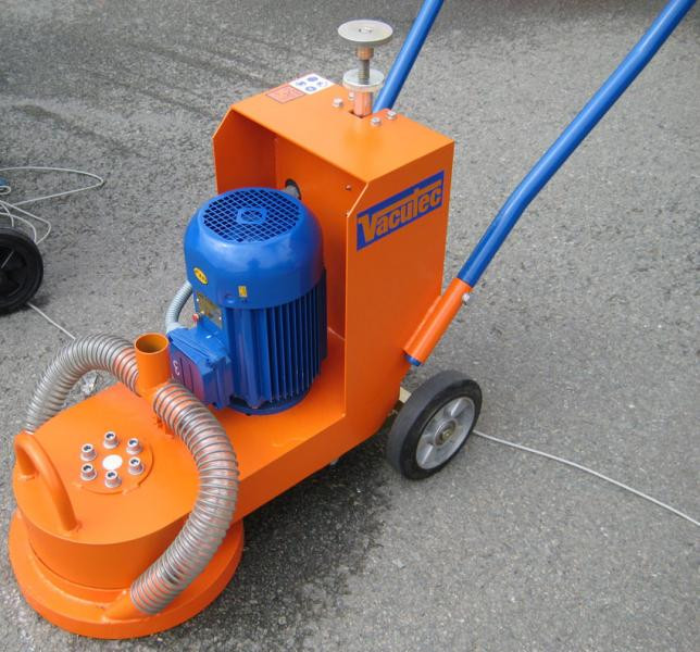 Jednokotoučová bruska Vacutec s diamantovými segmenty se používá k broušení betonových povrchů i s různými povrchovými úpravami.