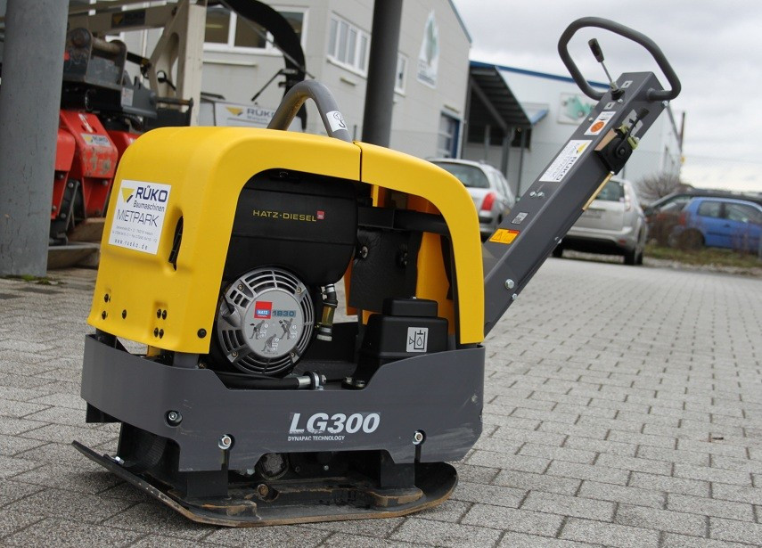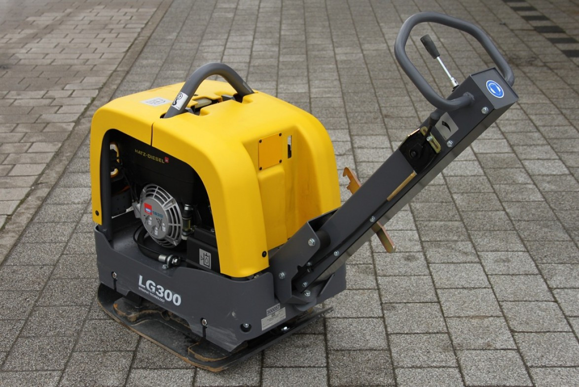 Obousměrná vibrační deska Atlas Copco. Je vybavena motorem Hatz 1B30/4,2 s ručním startem.