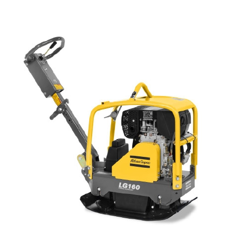 Obousměrná vibrační deska Atlas Copco. Je vybavena motorem Hatz s ručním startem. Šířka tlumící desky je 330, nebo 450 mm.