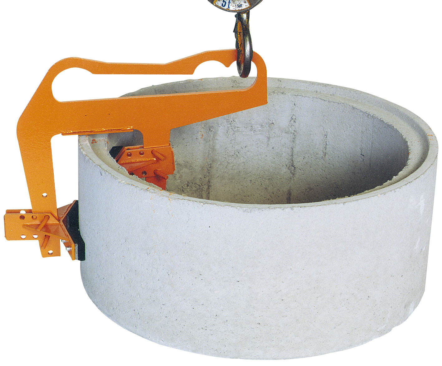 Uvedená svěrka slouží k zvedání a usazování skruží pomocí jeřábu.