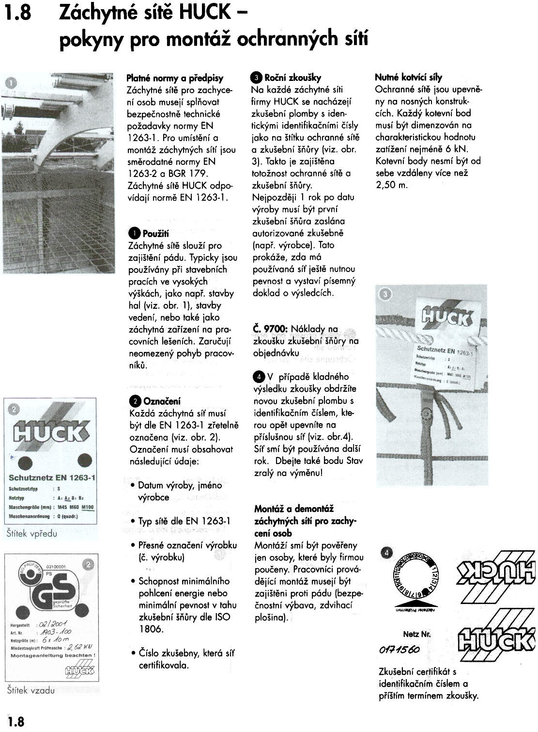 Tyto sítě slouží k případnému zachycení pracovníků z konstrukce a zavěšují se k obvodové konstrukci, na které se pracuje.