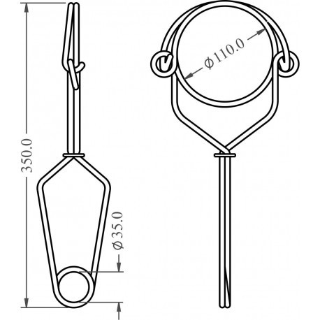 Upevńovací dratěná kotva se světlostí 110 mm a únosností 23 kN. další rozměry jsou na přiloženém obrázku.