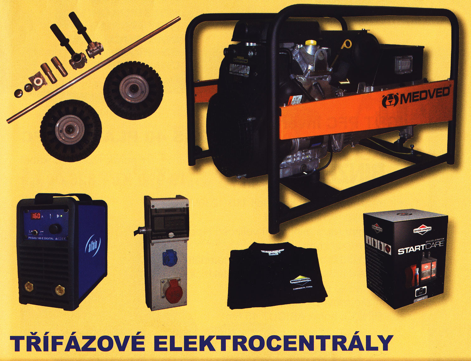 Kromě uvedených třífázových centrál Medved dodáváme ještě elektrocentrály těchto výrobců a provedení: