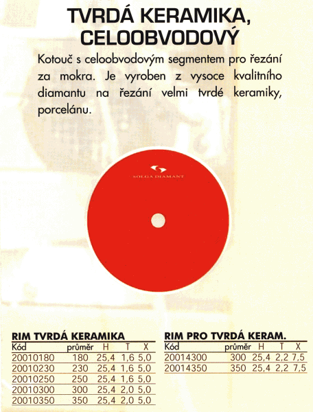 Tyto kotouče jsou vhodné na tvrdé materiály, jako je porcelán, či slinuté dlaždice. Kotouč je určen pro mokrý řez, zejména pro stolové pily.