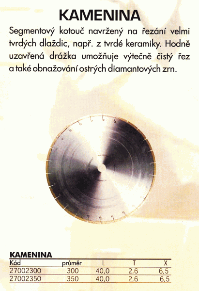 Tyto kotouče jsou vhodné na tvrdé materiály, jako kamenina, nebo porcelán. Kotouč má hodně uzavřenou drážku, díky ní je řez velice čistý.