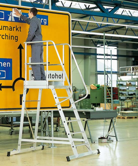 Praktický, mobilní žebřík s plošinou, univerzálně použitelný