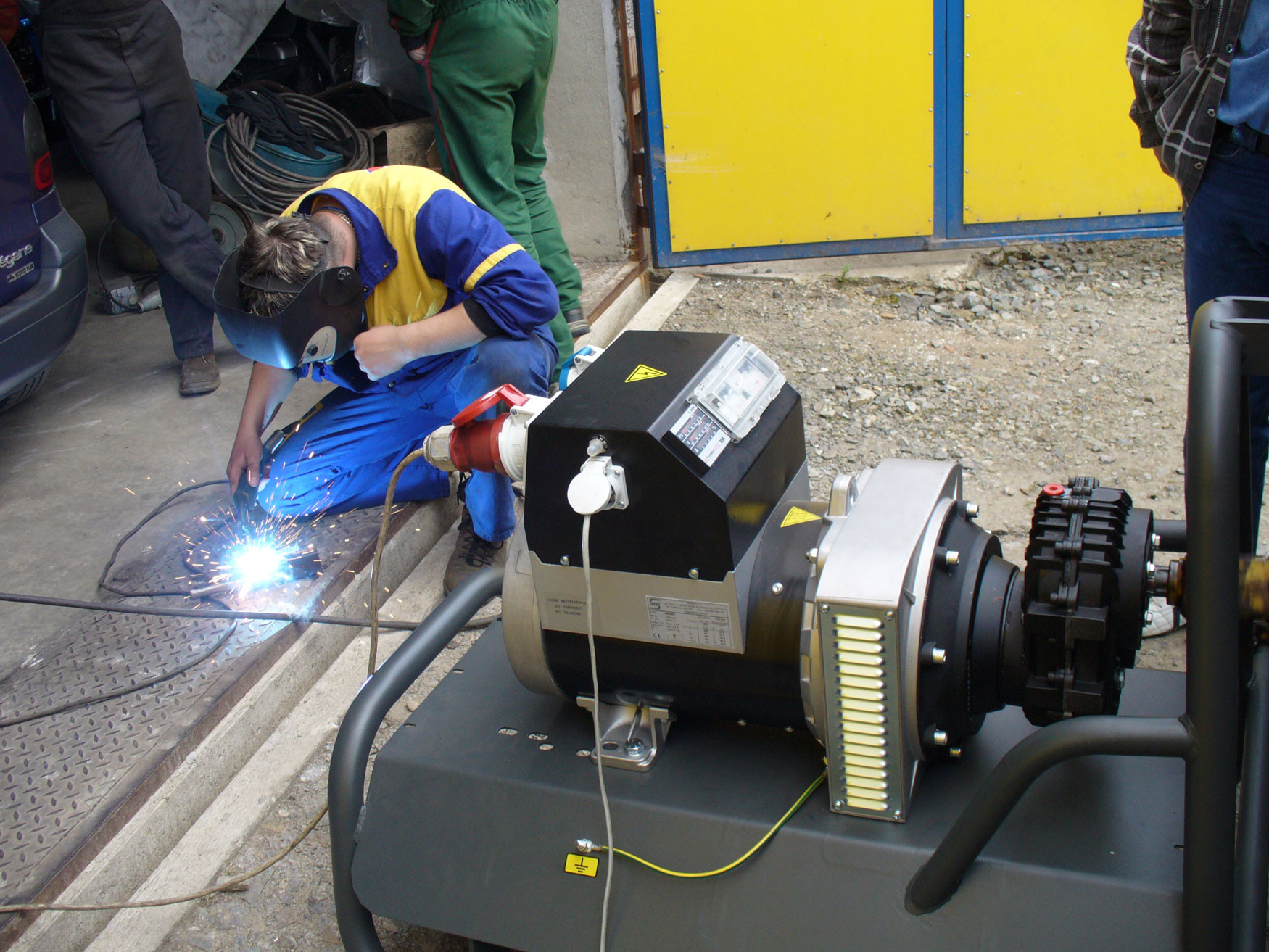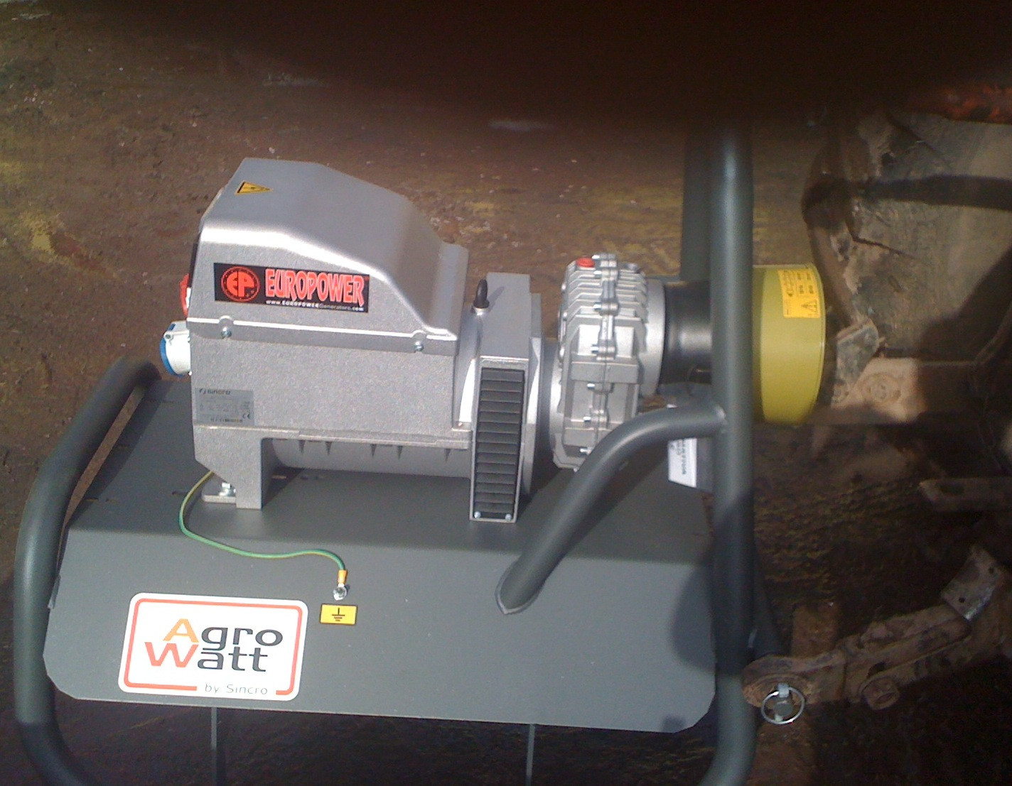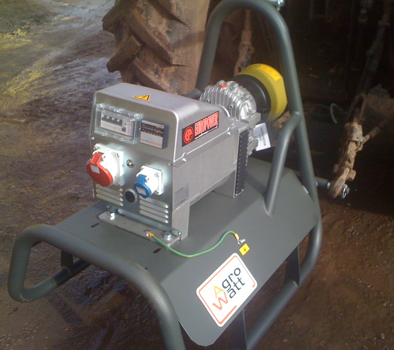 Traktorové elektrocentrály připojují se na tříbodový závěs traktoru a pohání krátkým kloubovým hřídelem.