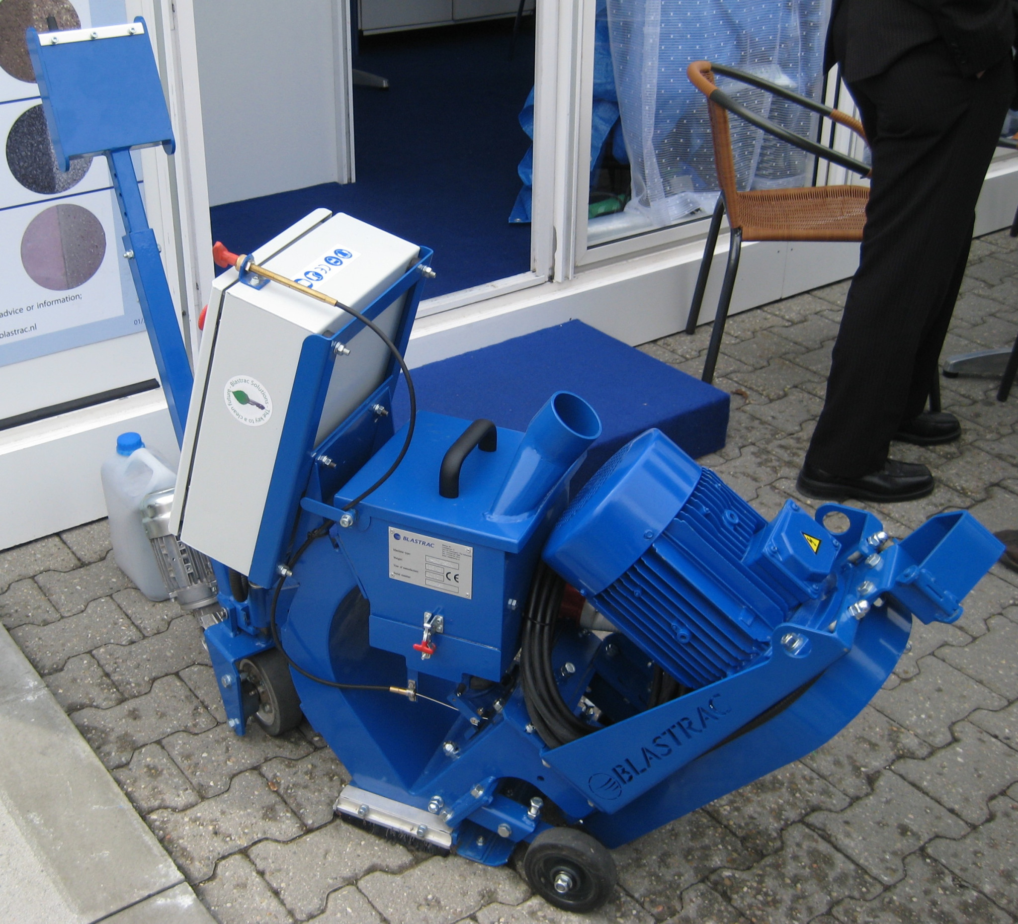Otryskávač 1-8DPS 30 Blastrac slouží k otryskávání různých povrchů při odstraňovaní vodorovného značení, zbytků gumy na letištních plochách, čištění podlah před další úpravou, úpravě pro dekorativní použití.