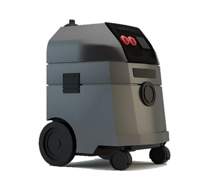 Malý lehký průmyslový vysavač Blastrac vyrobený z polyesterového plastu. použitelný je pro vnitřní i venkovní použití.