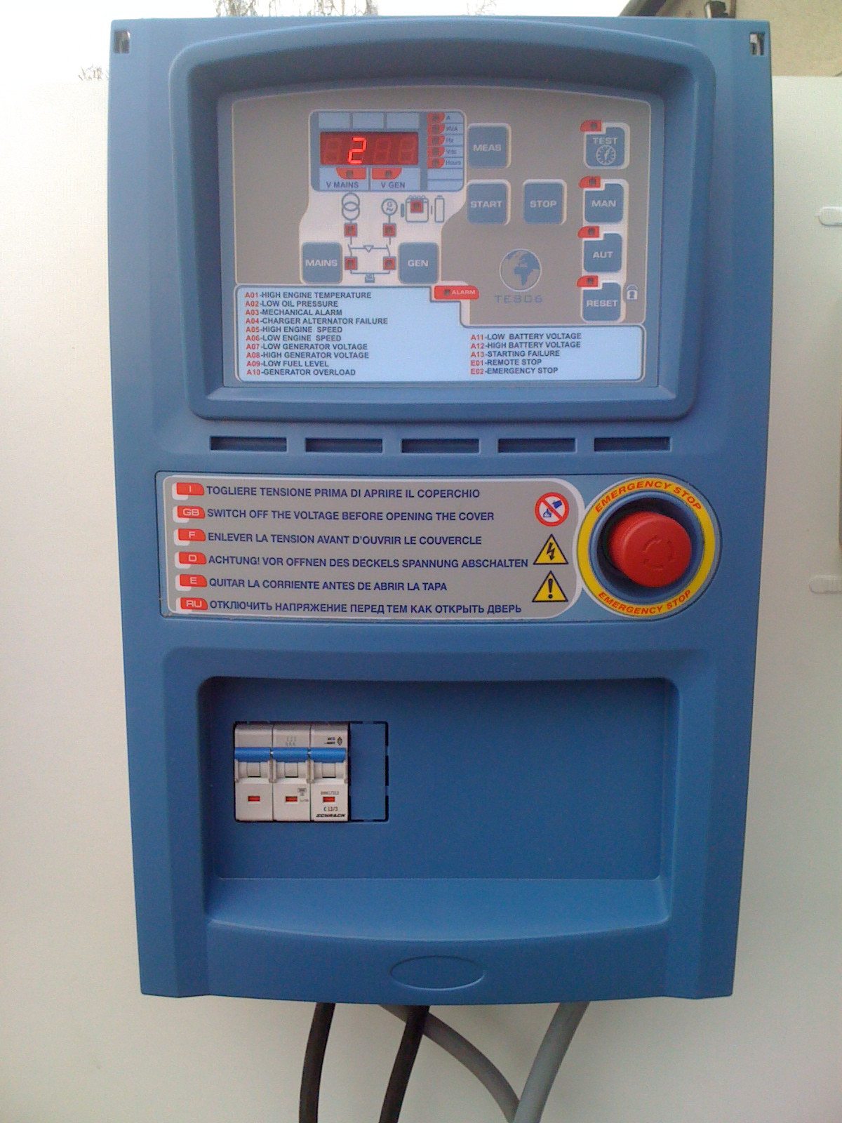 • jednotkou pro automatický start, to znamená, že při výpadku proudu v síti elektrocentrála v předem nastaveném intervalu automaticky nastartuje. Rovněž se dá nastavit doba, kdy elektrocentrála vypne při opětovném spuštění sítě.