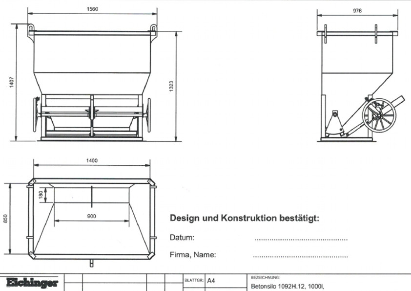 Badie řady 1092 je podélný zásobník o délce 130 a šířce 85 cm, výška je 93, resp. 115, ev. 135 cm. Pákou je ovládám podélný uzávěr. Tato badie je vhodná např. na plnění základů, nebo dlouhých úzkých forem. Dá se využít i na zásyp výkopů sypkým materiálem. Zavěšení je pomocí čtyřnásobného řetězu s okem.