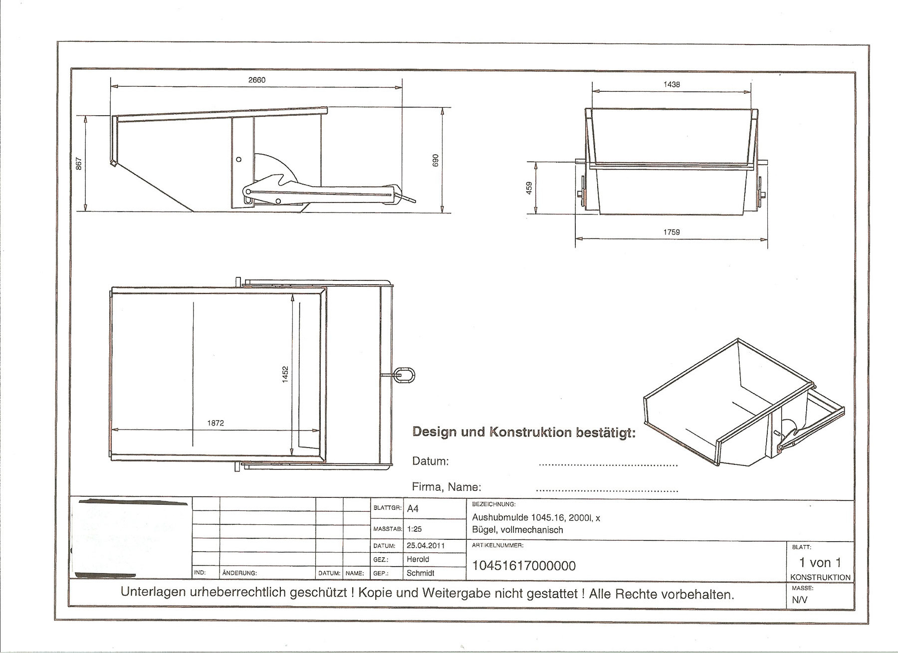 Objem kontejneru je 2 000 litrů, hmotnost je 540 kg, nosnost je 4 800 kg.