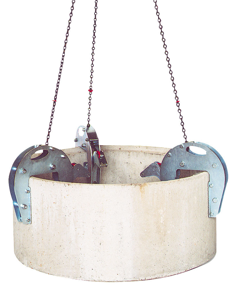 Samosvorné svěrky slouží ke zvednání a manipulaci skruží a podobnými betonovými předměty.