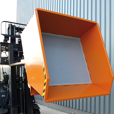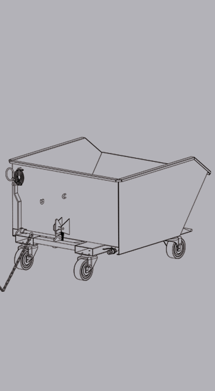 Ručně vyklápěný kontejner Eichinger se nasazuje na vidle vysokozdvižných vozíků. Jeho uplatnění je velice široké. Objem je od 300 do 2 000 litrů,viz tabulka níže, kde jsou uvedeny rozměry, hmotnost i nosnost. Hlavní uplatnění je pro převoz materiálů znečištěných různými kapalinami, např. špony. Ve výšce 10 cm od dna je síto. Z dolní části kontejneru lze kapalinu vypustit kulovým ventilem, viz obrázek.