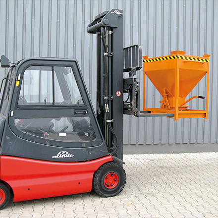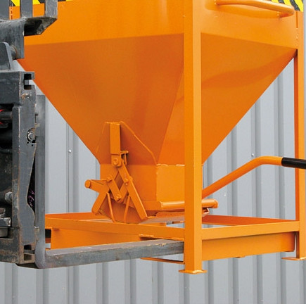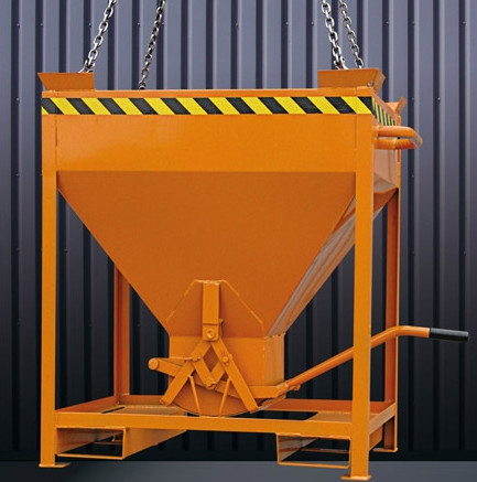 Silo-kontejner Eichinger. Tento kontejner je na pevných nohách s kapsami pro VZ vozíky a slouží pro navážení sypkých materiálů a jejich vpouštění do vpustí. Kontejner lze rovněž manipulovat jeřábem pomocí sdruženého závěsu.