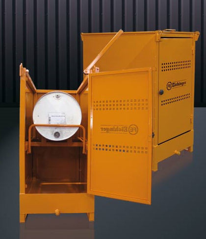 Mobilní sklad olejů Eichinger, model 3030.2 je určen pro přepravu a bezpečné skladování 1 sudu s olejem o obsahu 200 l. Dolní část přepravníku slouží, jako záchytná vana s vypouštěcím šroubem. Přepravník je zastřešen a dá se zamknout visacím zámkem.