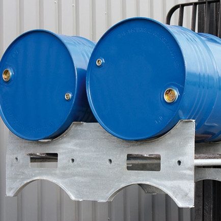 Paleta na přepravu sudu Eichinger - jednoduché zařízení usnadňuje skladování a stohování sudů a barelů. Manipulace pomocí kapes pro VZV. Paleta je určena pro dva sudy. Palety lze na sebe stohovat.