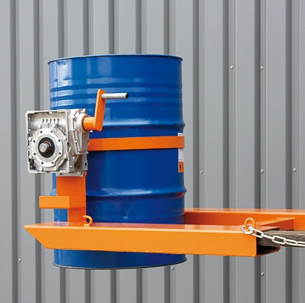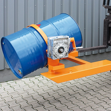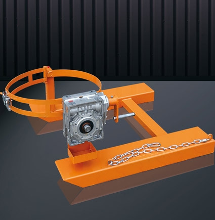 Nosič a výklopné zařízení sudů Eichinger, model 2234 - zařízení určené pro otáčení, vysépání, vyklápění nebo vylévání. Sud je pevně obepnut a zajištěn ocelovou obručí, která je součástí zařízení. Otočení probíhá přes dvojitý šnekový převod, přes kladku s řetězem nebo hydraulicky. Přídavné zařízení VZV.