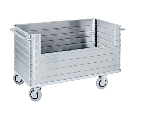 2 otočná a 2 pevná kolečka o průměru 200 mm, šířce 50 mm, umístěna v rozích vozíku, gumový, otěruvzdorný povrch, válečková ložiska, lehký chod, ochrana proti namotání nití