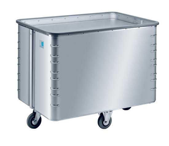 Vozík s vertikálně pohyblivým dnem umožňuje nastavení horní plochy přepravovaného zboží do stejné výšky, vhodné pro uchopení