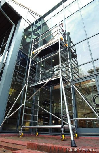 Duralové lešení Boss se dá stavět i na schodišti (nemá těžký podvozek)