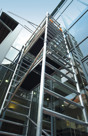 Duralové lešení Boss se dá stavět i na schodišti (nemá těžký podvozek)