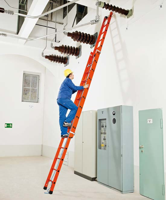 Celoplastový dvoudílný výsuvný žebřík s lanem