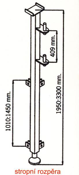 Stropní, neboli balkonová rozpěra se vzepře o strop a slouží k uchcení konzolových vrátků Camac. Délka rozpěry je stavitelná v rozsahu 195 - 330 cm. Hrubé nastavení se provádí pomocí čepu, dotažení pomocí stavitelného šroubu.