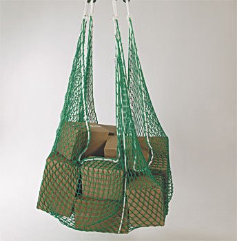 Jeřábová přepravní sí't o rozměru 4 x 4 m je na koncích opatřena zesílenými textilními oky. tato síť slouží pro přepravu více kusů materiálů, jako jsou krabice, role a balíky izolace. Uplatnění těchto přepravních  sítí je zejména ve stavebnictví.