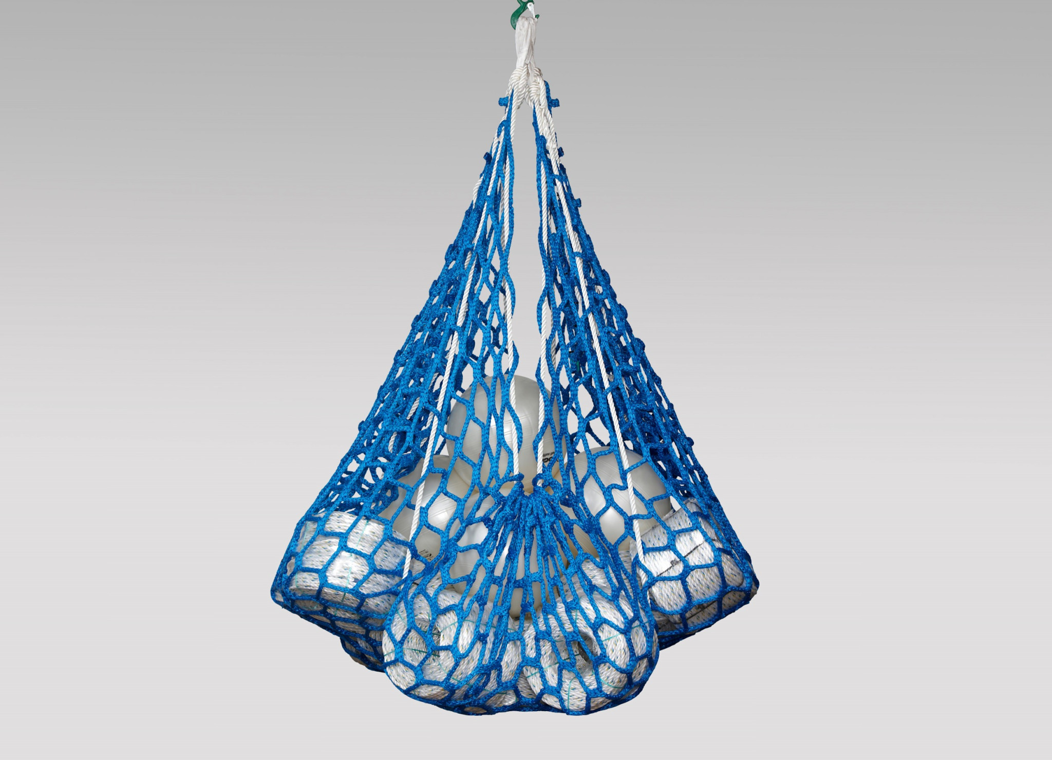 Jeřábová přepravní sí't o rozměru 3 x 3 m je na koncích opatřena zesílenými textilními oky. tato síť slouží pro přepravu více kusů materiálů, jako jsou krabice, strojní součásti. Uplatnění těchto přepravních sítí je zejména ve stavebnictví.