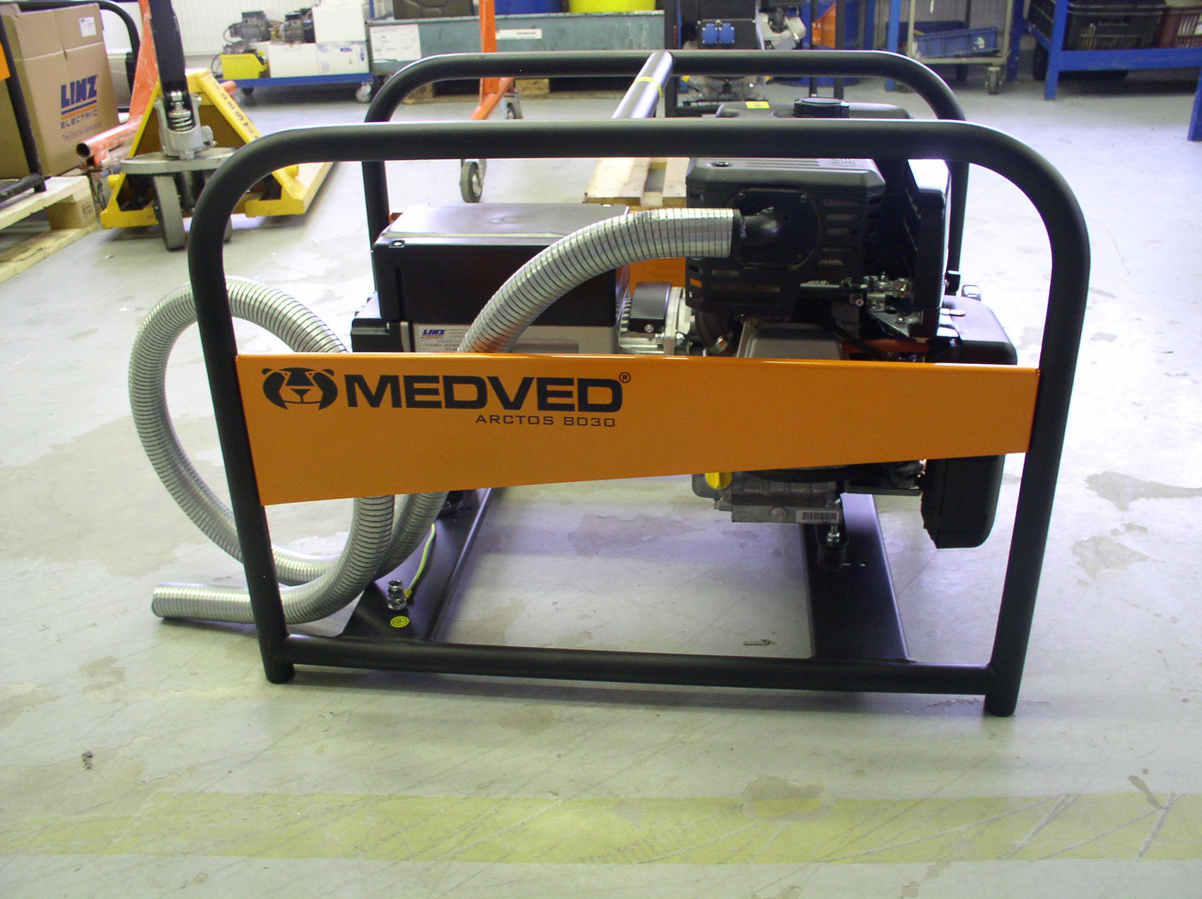Profesionální jednofázová elektrocentrála Medved Arctos 20 000 VE AVR - ATS pro náročný provoz. Elektrocentrála je vybavena podvozkem a regulací AVR, alternátor je od firmy Linz. Motor je Vanguard V-Twin 6134 o objemu 993 cm3, výkon 26 kW. Objem nádrže je 25 l. Výkon centrály je 18 kVA na 1 fázi.