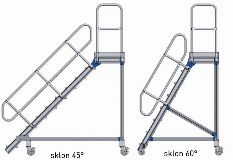 Pojízdné schody s podestou jsou modulové konstrukce o následujících parametrech: