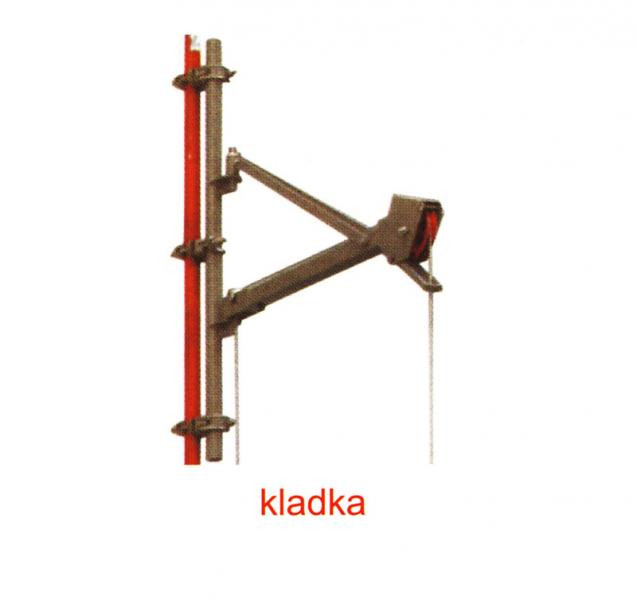 Kladka se používá ve spojení s vrátkem Base. Součástí kladky je ovládací kabel koncového vypínače, který se připojuje k vrátku. Poloměr otáčení konce kladky je 98 cm.